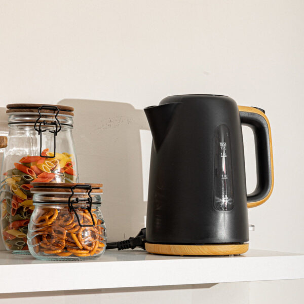 Ο βραστήρας Oak, με ισχύ 2200W και χωρητικότητα 1.7 λίτρων, είναι σχεδιασμένος για να καλύπτει τις ανάγκες κάθε σύγχρονης κουζίνας. Διαθέτει αυτόματη απενεργοποίηση για αυξημένη ασφάλεια και περιστρεφόμενη βάση 360° με ενσωματωμένη αποθήκευση καλωδίου, για ευκολία στη χρήση και εύκολη αποθήκευση. Η σειρά ηλεκτρικών συσκευών Oak, περιλαμβάνει μία γκάμα συσκευών για προετοιμασία φαγητού και πρωινού. Αναβαθμίστε την καθημερινότητά σας με στυλ και λειτουργικότητα, ενσωματώνοντας το μοντέρνο σχεδιασμό, με το μαύρο χρώμα και τις λεπτομέρειες ξύλου, στο χώρο σας.