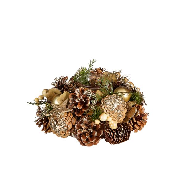 ΚΗΡΟΠΗΓΙΟ ΣΤΕΦΑΝΙ ΜΕ ΚΟΥΚΟΥΝΑΡΙΑ ΧΡΥΣΕΣ ΜΠΑΛΕΣ h9 d19cm