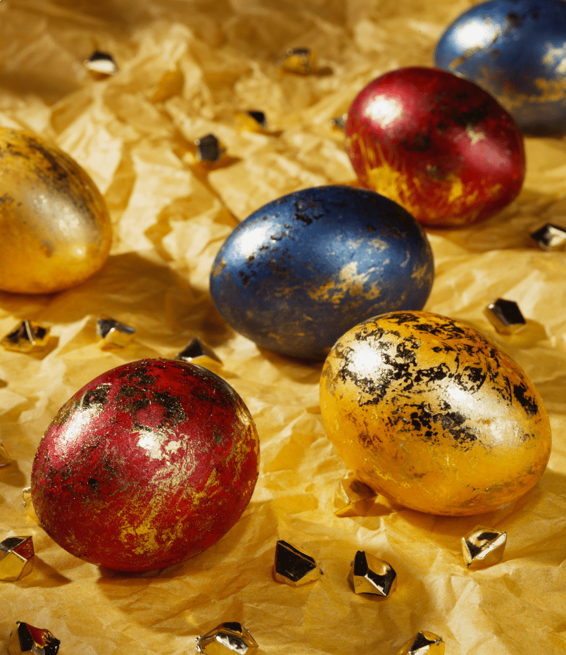 Εντυπωσιάστε τους καλεσμένους σας με αυτές τις βαφές αυγών φέρνοντας τη λαμπρότητα της ρωσικής αυτοκρατορικής αυλής και τα διάσημα αυγά Fabergé στο γιορτινό σας τραπέζι.